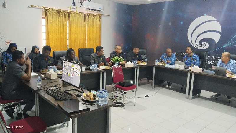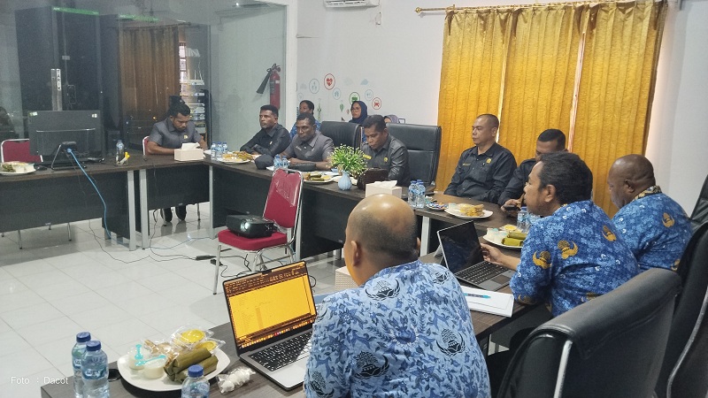 Kepala Dinas Kominfo Taufik Wahyu Hidayat, SE., MM., beserta Pejabat Eselon III dan IV menerima Rombongan Komisi C DPRK Kaimana  di ruang Rapat Dinas Kominfo Jalan Utarum Pasir Lombo Kaimana.