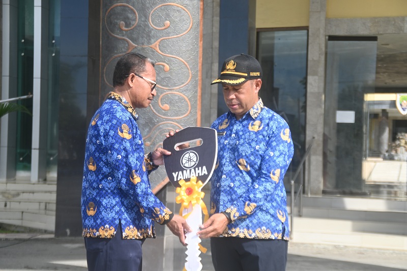 KOMINFO KAIMANA – Usai pelaksanaan Apel Hari Kesadaran Nasional yang digelar di halaman apel Kantor Bupati Kaimana, Pemerintah Kabupaten Kaimana menerima penghargaan dari BPJS Kesehatan berupa satu unit sepeda motor operasional yang diserahkan pada hari Jumat (17/10/2025) di halaman Apel Kantor Bupati kaimana.