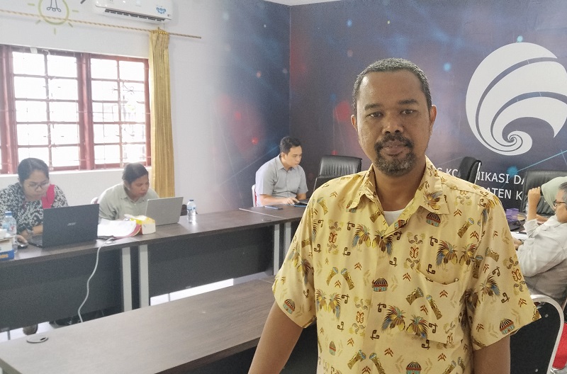 Kepala Dinas Kominfo Kaimana, Taufik Wahyu Hidayat, SE., MM.,  disela-sela kesibukannya di Ruang Rapat Kantor Dinas Kominfo Kaimana Dalam Rangka Pemantauan Pelayanan Terhadap Pengguna Jaringan Starlink.
